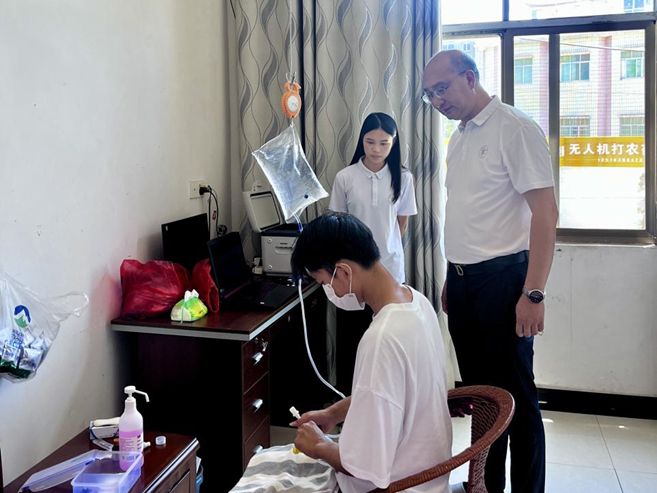 范红铭校长和虞康琪聊天许久,虞康琪很遗憾地表示:“以后不能干重活了”,范校长语重心长地说道:“以后有困难就和学校说,学校是你的港湾也是你的后盾,如果不能干重活,学校就帮你推荐不用干重活的岗位,让你在家也能就业,不要有后顾之忧。”这一刻,他不再是孤军奋战的勇士,而是整个学校大家庭中不可或缺的一份子。