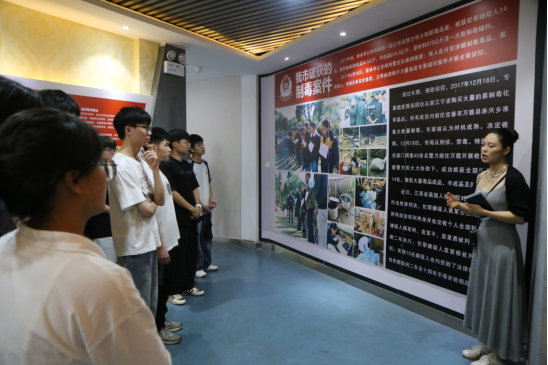 在第37个国际禁毒日来临之际,6月24日举办“青春不‘毒行’”禁毒主题宣传活动,通过歌曲、舞蹈、朗诵、快板等形式,向师生们传递禁毒的重要性。新余市渝水区公安局禁毒大队依托“警校家”安防机制组织禁毒知识“思政课堂”。禁毒民警用通俗易懂的语言向青年大学生们讲解新型毒品的危害和办理的真实案例,引导青年大学生了解新型毒品的危害,并通过展示仿真毒品让青年大学生们近距离了解和看清毒品的真面目,呼吁青年大学生们提高禁毒意识,远离毒品、拒绝毒品,号召大家争当禁毒宣传员。