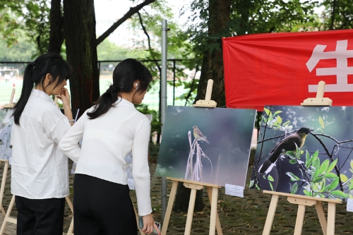 活动现场,80多幅鸟类、兽类、两栖类、爬行类动物的照片和科普知识以图文并茂的方式进行了展出,吸引了师生驻足观看,进一步提高了师生对生物多样性保护的认识。