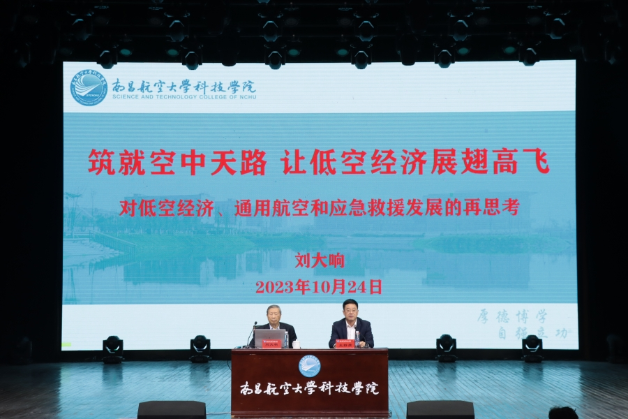 • 10月24日上午,“智汇共青”院士专家共青行走进南昌航空大学科技学院,中国工程院院士、北京航空航天大学教授、博士生导师刘大响受邀在学院礼堂作主题为“筑就空中天路,让低空经济展翅高飞——对低空经济、通用航空和应急救援发展”的学术报告,科技学院全体院领导、中层干部,各学部系主任及学生代表到会聆听。报告会由南昌航空大学党委书记李德平主持。