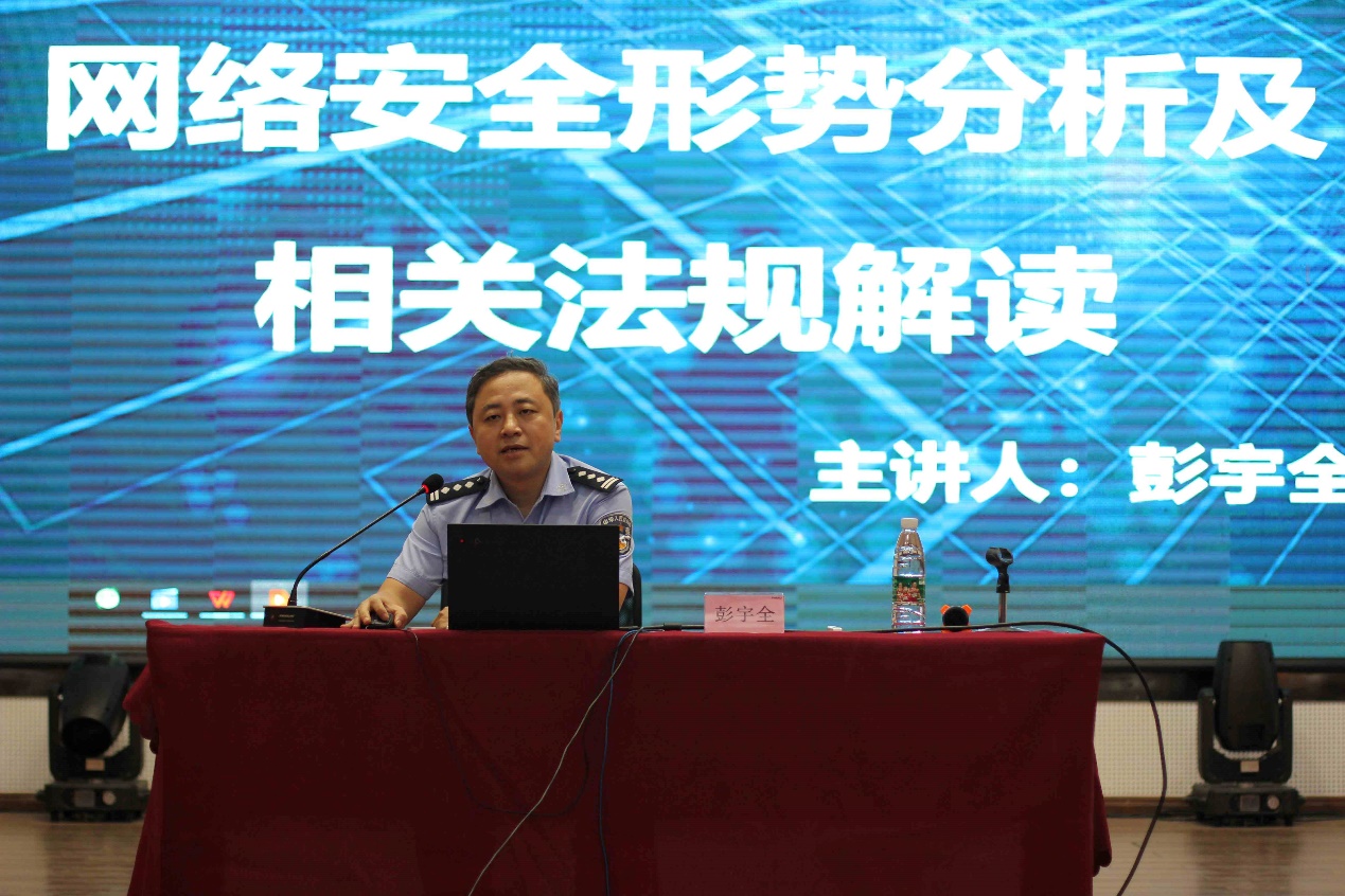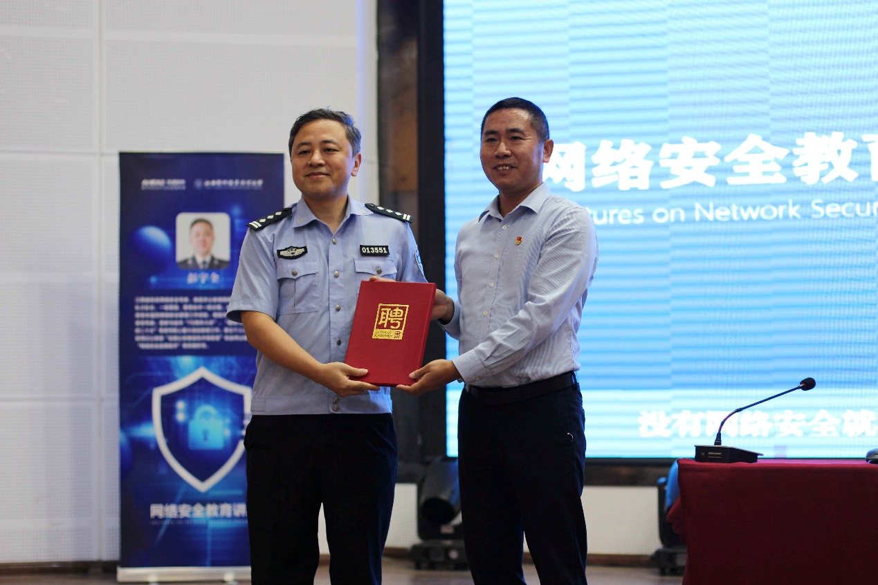 当天下午,我省知名网络安全专家、南昌市公安局网络安全保卫支队二大队大队长彭宇全受聘为江西软件职业技术大学客座教授,并为学校师生作《网络安全形势分析与相关法规解读》专题讲座。网安支队二大队民警、网络和谐号志愿服务队讲师占艺璇也在学术报告厅作了《防范电信诈骗,共建平安校园》专题讲座。