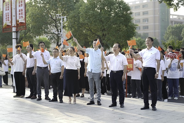 9月28日,江西工程学院举行“学思践悟守初心,砥砺奋进新征程”迎国庆升国旗仪式,通过升国旗、朗诵、集体宣誓、合唱红歌、萨克斯演奏、主题书画展等方式,抒发当代师生浓浓爱国情,为祖国母亲送上最真挚、最美好的祝福。