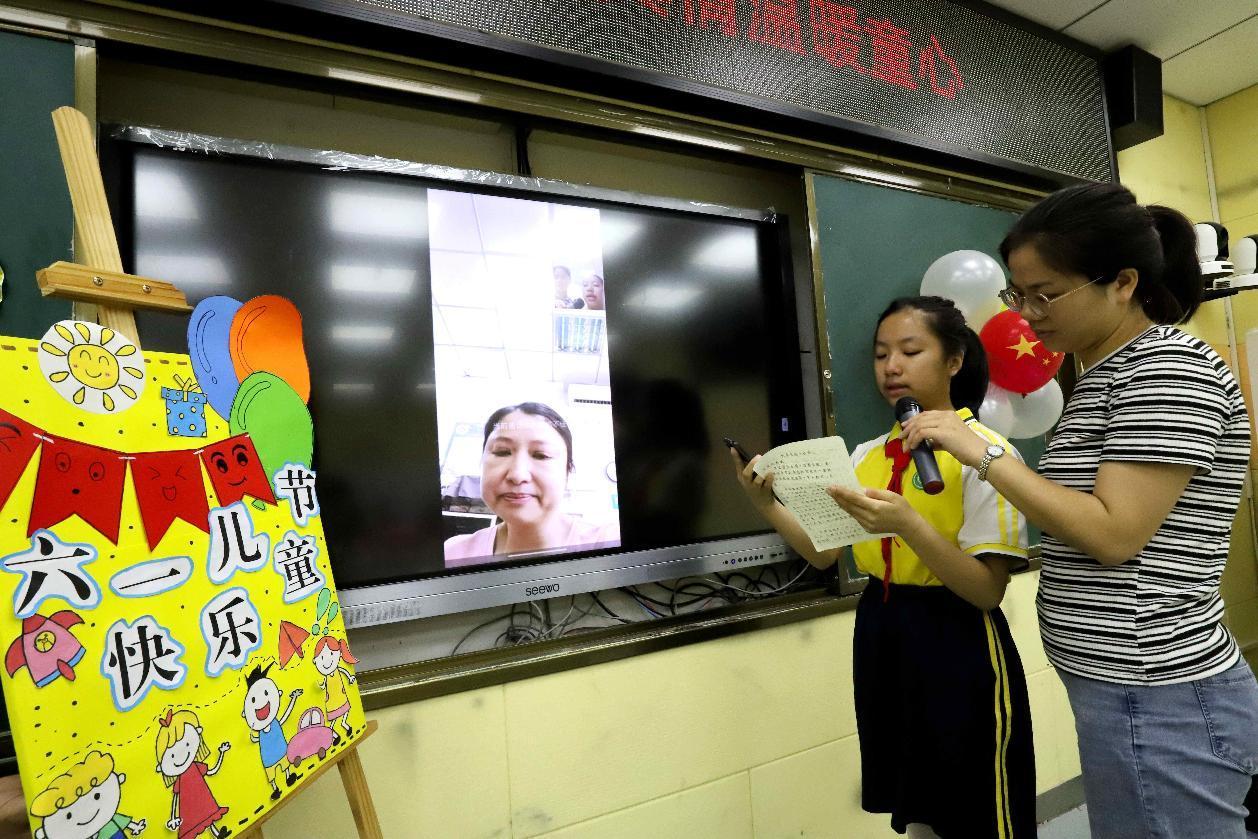 “宝贝,祝你儿童节快乐,这个六一没有陪你度过,但是爸爸妈妈是爱你的哦!”“婷婷,今天是你的节日,希望你不管多大,永葆童心,你永远是最棒的。”……随后,老师给孩子们带来了一份特殊的礼物,现场播放了6名家长给孩子们录制好的祝福视频。