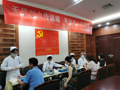 为进一步推动学习贯彻习近平新时代中国特色社会主义思想主题教育走深走实,践行宗旨为民造福,弘扬无私奉献精神,助力保障全省血液供应安全,8月8日,省委教育工委、省教育厅组织开展了“无偿献血传温暖 奉献爱心显担当”无偿献血志愿服务活动。