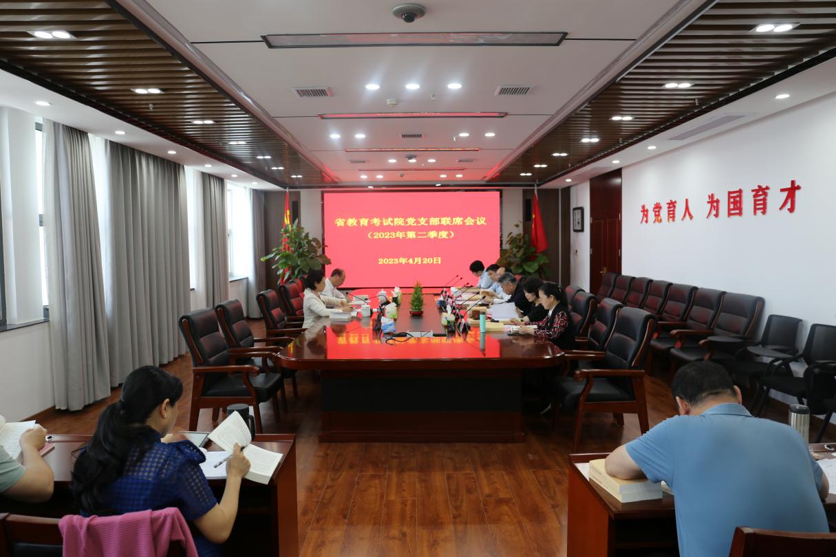 4月20日,省教育考试院召开2023年第二季度党支部联席会议,听取各党支部第一季度党建工作情况汇报,分析存在的问题,研究部署第二季度党建重点工作。省委教育工委委员、省教育考试院党委书记刘雪平主持并讲话。