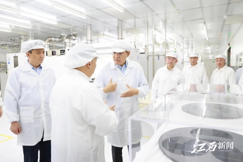 今年4月,省委、省政府在依托国家硅基LED工程技术研究中心的基础上,正式启动了首个省级实验室——复合半导体江西省实验室(南昌实验室)建设,为我省光电产业高质量发展提供关键支撑。尹弘来到国家硅基LED工程技术研究中心。该中心由中国科学院院士江风益牵头研发的“硅衬底蓝色发光二极管”项目,获得了2015年国家技术发明奖一等奖。尹弘与江风益院士深入交流,详细了解硅基LED相关技术路线以及硅衬底LED芯片技术的最新研究进展和市场应用等情况,鼓励科研团队在关键核心技术的攻关路上矢志奋斗、勇攀高峰,持续扩大领跑优势。尹弘认真察看产品应用展示,详细询问科研技术成果,希望中心发挥技术优势,建好一流平台,引育一流人才,产出一流成果,进一步健全完善产业对接机制和利益联结机制,实现“基础研究—技术攻关—技术应用—成果产业化”全过程无缝衔接,有效贯通原始创新、集成创新、开放创新,为不断提升现代化产业的核心竞争力作出更大贡献。