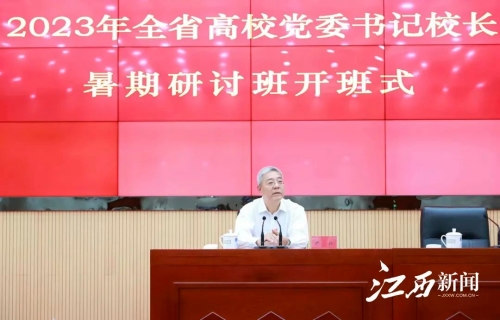 8月16日至19日,2023年全省高校党委书记校长暑期研讨班在省委党校举行。省委书记尹弘出席开班式并讲话,他强调,要深入贯彻党的二十大精神和习近平总书记关于高等教育的重要论述,按照省委十五届四次全会的部署要求,全面落实立德树人根本任务,坚持社会主义办学方向,切实办好人民满意的大学,以高等教育高质量发展加快推进教育强省建设,为谱写中国式现代化的江西篇章提供强大支撑。