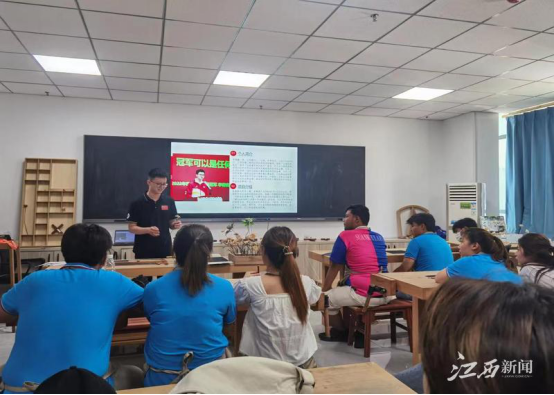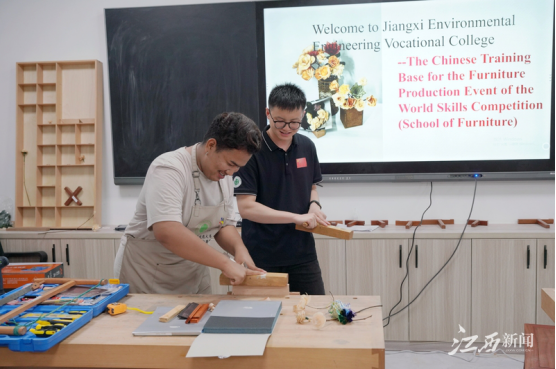 “同学们,这是中国特有的榫卯结构,是在两个构件上采用凹凸部位相结合的一种连接方式,凸出部分叫榫,凹进部分叫卯。”近日,家具制作项目世界技能大赛冠军、江西环境工程职业学院教师李德鑫为学院的16名泰国留学生讲授中国传统家具制作技艺。