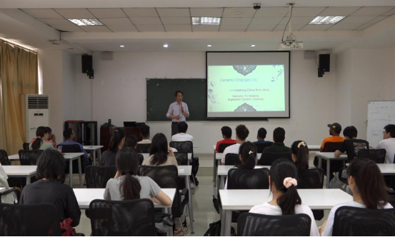•     近日,国家主席习近平复信中国石油大学(北京)的中亚留学生,鼓励他们为推动中国同中亚国家关系发展作出更大贡献;习近平主席在主持首届中国—中亚峰会并发表主旨讲话时强调携手建设守望相助、 共同发展、普遍安全、世代友好的中国—中亚命运共同体。为深入学习贯彻习近平总书记重要复信、讲话精神,讲好中国故事,帮助留学生深入了解中国文化,华东交通大学特邀请景德镇陶瓷大学余孝平教授来校开展题为“Ceramic Changes Us”的讲座。