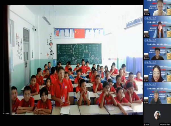 9月15日晚上,国家语言文字推广基地(东华理工大学)携手东华理工大学“推普助力乡村振兴”全国大学生暑期社会实践志愿服务团队——“普惠乡村”赴疆社会实践队,通过线上的方式,与新疆阿克陶县昆仑佳苑小学的师生举行了回访座谈会。本次线上回访座谈是为了进一步了解2023年7月团队在昆仑佳苑小学的推普成效,强化双方的情感联结。2023年7月“普惠乡村”团队在昆仑佳苑小学进行了为期半个月的驻地推普活动,团队深入课堂,采用“普通话+”的形式,通过音乐、诵读、游戏等方式教授了普通话、讲解了中华传统文化,融入了当地文化,做到了同语同心,受到当地师生的热烈欢迎。