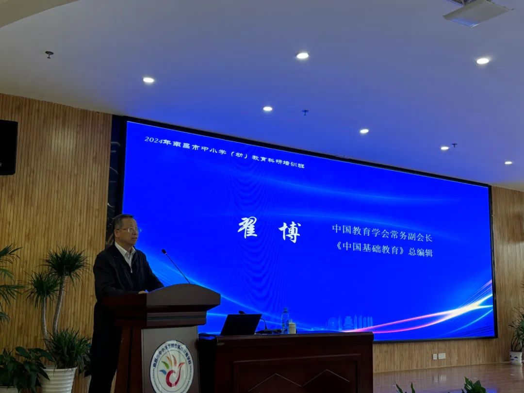为进一步推动我市基础教育课程改革和教学改革,提升教育科研工作的质量和实效,4月24日至25日,由中国教育学会《中国基础教育》编辑部指导、南昌市教育局主办、南昌市教育评估监测和技术推广中心和南昌市中小学生综合实践教育学校承办的南昌市中小学(幼)教育科研培训班顺利举办。中国教育学会常务副会长、《中国基础教育》总编辑翟博,市委教育工委委员、市教育局副局长付青岚出席并致辞,《中国基础教育》执行总编辑张彦春、中国教育学会《中国基础教育》融媒体部主任吴盈盈、中国教育学会《中国基础教育》活动推广部主管单金良、深圳市教育科学研究院原教育科研管理办公室主任黄积才出席。赣江新区、各县(区)教科研部门负责人,局属学校(单位)、省属事业办和市管民办学校教科研部门负责人以及市教育科研客座研究员共计150余人参加培训。
