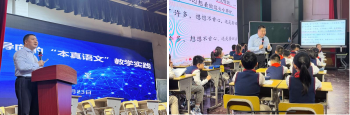 东湖区教师发展中心党支部书记、特级教师汪智星作了专题发言及教学成果汇报展示。汪智星讲述了自己二十三年来“本真语文”教学路径的探索,从情趣型的“激情、务实、求活”到情智型的“智慧、本真、清简”,再到“本真教育”哲学观视阈下的“本真语文”教学主张的更新迭代,汪老师对“本真语文”的探索给在座的老师们以思考和启迪。展示的教学课例《漏》着力让语文课返璞归真,学生在轻松、享受的状态下完成学习任务,呈现了一堂纯粹而又真实的语文课堂。