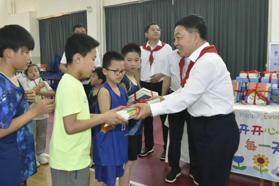 叶建春来到陶艺课堂、学生食堂、劳动基地、体育场馆等场所,观摩孩子们丰富多彩的节日活动,分享大家参与捏陶瓷、包粽子、浇水除草等各类活动的学习收获,鼓励大家更多动手实践、出力流汗,感悟劳动之美、感受体育之乐,不断增长见识、磨炼意志。叶建春向孩子们赠送书本,寄语他们多读书、勤读书,在阅读中收获乐趣和知识,让阅读成为习惯,让书香浸润心灵。他说,少年儿童现在是汲取营养的小树苗,以后要成长为奉献社会的参天大树。要教育引导他们养成良好行为习惯,做德智体美劳全面发展的新时代好少年。
