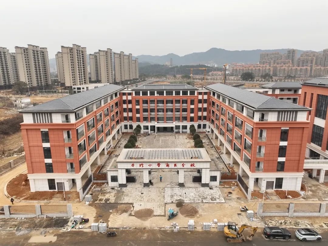 子珍小学新区分校负责人凡旭鹏介绍:“子珍小学新区分校建设目前已进入扫尾阶段,教学设备已陆续在进场,确保春季能正常开学。目前分为3栋楼,1号楼为综合楼,有40个教室,能容纳1800名学生;2号楼是功能室,里面有艺体美、科学、计算机,都是标准的模式;3号楼是食堂和会议室,都在装修,确保能在开学正常使用。”