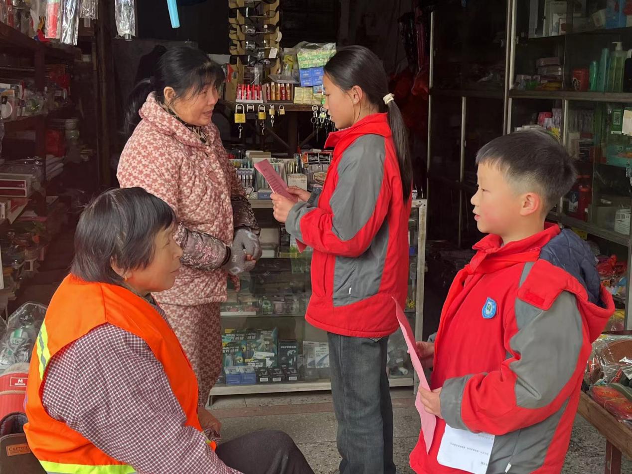 萌娃“上岗”宣传交通安全宣传。四都小学的学生们在老师的带领下走上街头,向过往行人发放自制的交通安全宣传手册。孩子们用稚嫩却坚定的声音向当地居民宣传交通安全知识,引导大家遵守交通规则,为营造安全有序的交通环境贡献力量。